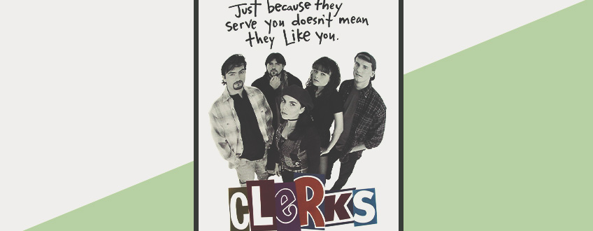 The movie Clerks is especially charming because the main characters have regular jobs, just like everybody. This movie creates an atmosphere you get at a gas station or convenience shops, where the cashier is extremely unhelpful and grumpy.