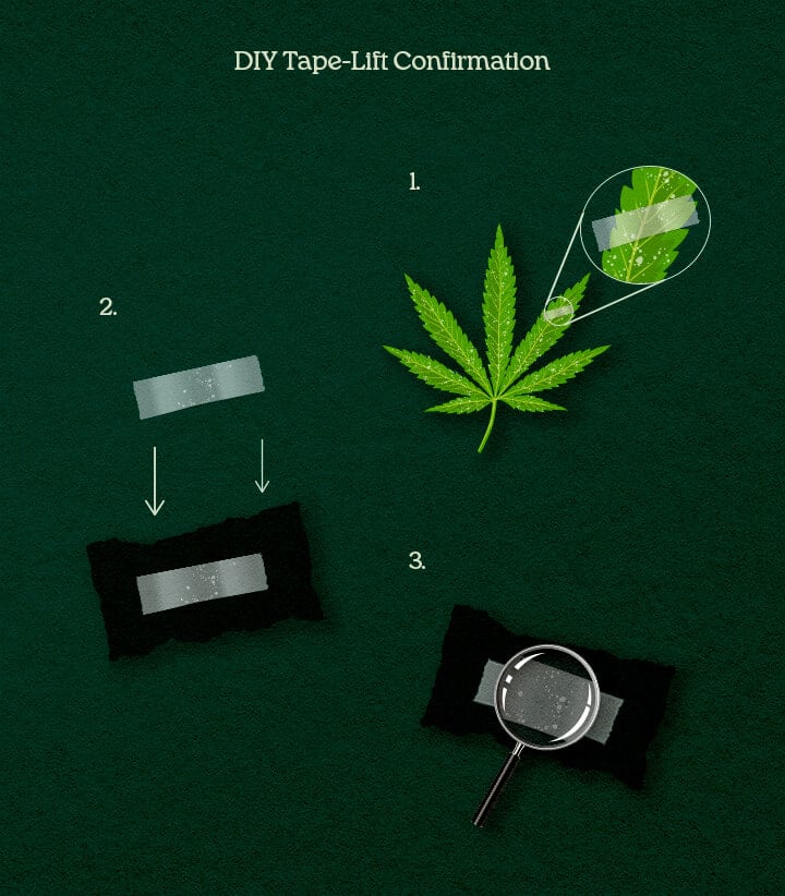 Thankfully, home growers don’t need to invest in expensive microscopes or testing to identify powdery mildew on marijuana. The trusty DIY tape-lift method serves as an easy way to rule out other conditions and confirm the presence of PM conidia and hyphae. Follow the simple steps below to complete this test.